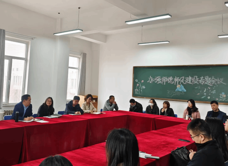 会上,党总支书记王立臣对“辽宁机电职业技术学院关于进一步压实师德师风建设主体责任教学部门责任方案”和“辽宁机电职业技术学院师德专题教育实施方案”做了详细解读,提出2024年全年以贯彻落实好师德师风建设为主线抓好党员和教师政治理论和业务学习工作。同时就开展好“师德师风专题教育”的重要性和必要性进行了强调并对数字商务学院全体党员和教师提出要求:第一、要把师德师风建设摆在首要位置,做到明底线、知敬畏、尽职尽责守好课堂教学主阵地,教师与辅导员要保持良好沟通,辅导员与学生家长要定期做好沟通交流,做到家校联动,全员育人。第二、要切实增强抓好安全工作的责任感和紧迫感,以更加严谨的作风、更加科学的方法、更加得力的措施、更加精细的管理,切实把各项要求和措施落到实处。第三、要严守师德底线,筑牢思想防线,规范教学行为、学习行为,坚决防范课堂教学事故,确保课堂教学安全有序,将“课程思政”融入到课堂中。第四、要深入教学研究,提高教学水平,围绕教学内容加强日常积累、强化知识储备,不断钻研提升、反思总结,备足“一桶水”,装满“一杯水”,提高课堂吸引力、感染力和教学质量。