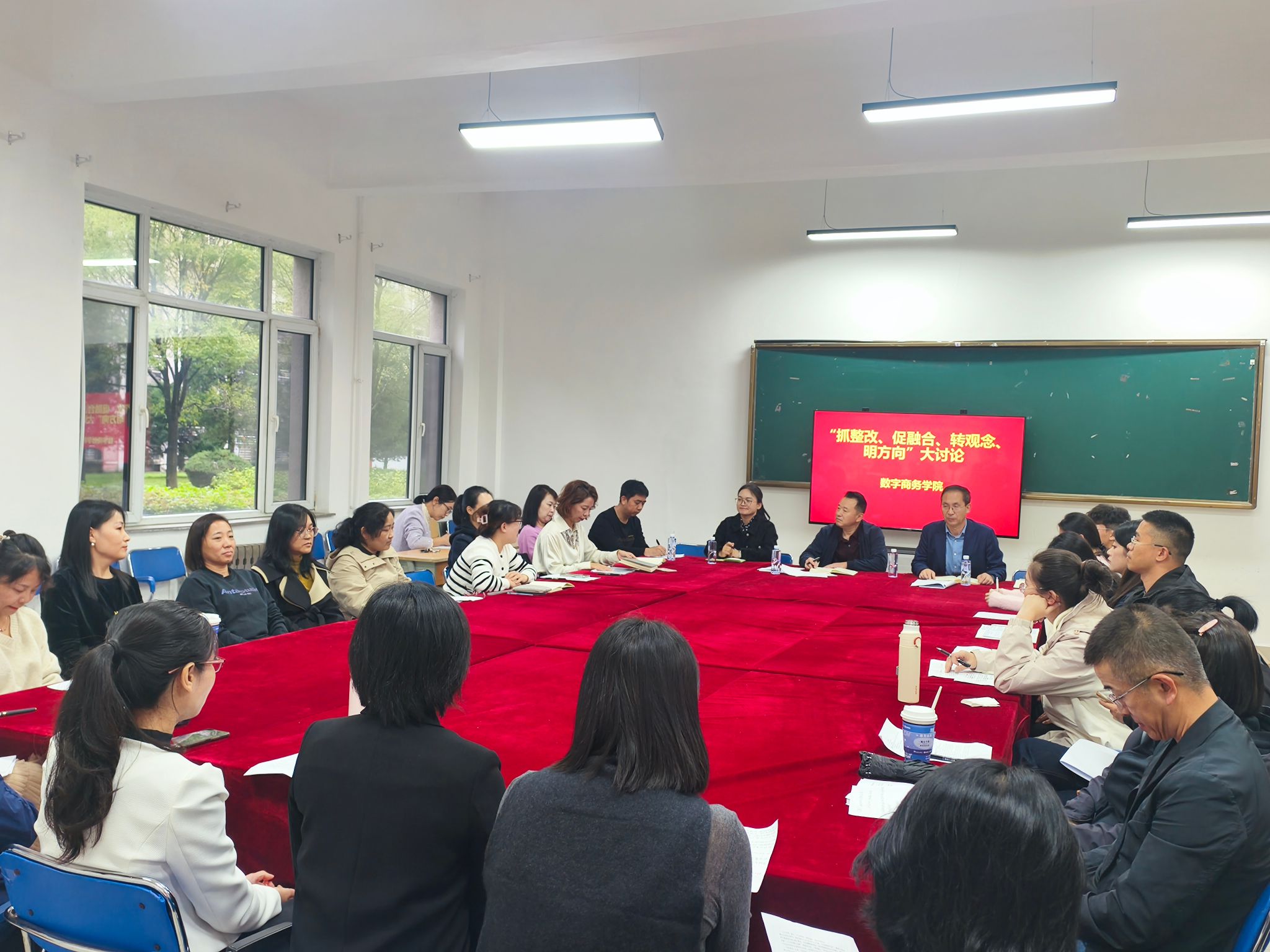 为深入贯彻落实学校关于第二期国家“双高计划”建设的决策部署,根据《辽宁机电职业技术学院开展“抓整改、促融合、转观念、明方向” 大讨论实施方案》要求。10月15日,数字商务学院在K110室开展了以 “抓整改、促融合、转观念、明方向” 为主题的大讨论活动。会议由数字商务学院党总支书记王立臣主持,全体教师及学生代表参加会议,学校纪委书记沈犁出席了会议。