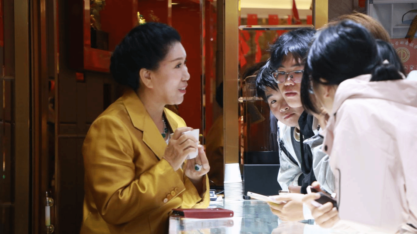 首先由中国黄金曲静珠宝办公室主任冯笑茹,系统讲解丹东作为边境商都的历史沿革与七经街“百年珠宝商街”的形成脉络。“这条街不仅见证了丹东从开埠到兴盛的历程,更孕育了东北珠宝行业的诚信基因。”冯笑茹结合商圈党群服务中心的红色印记,阐释了“珠宝工艺与商道文化共生”的发展逻辑,让新生理解专业背后的文化底蕴。
