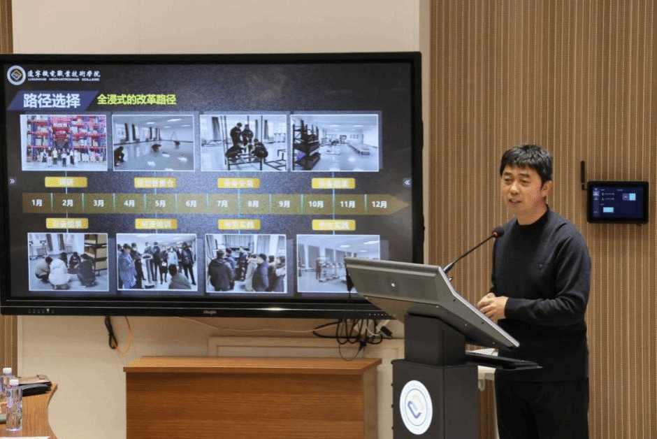 杭州海康机器人股份有限公司项目解决方案工程师张天时,围绕海康教育生态布局,深入解读了当前智能物流现场工程师领域的人才需求现状与行业发展趋势,为人才培养方向提供了行业视角。我校数字商务学院副院长杨帆分享了学院物流专业教学改革的实践经验。作为全国首个完成智能物流教学改革的院校,我校的探索成果为兄弟院校开展相关教学改革提供了极具价值的参考范例。